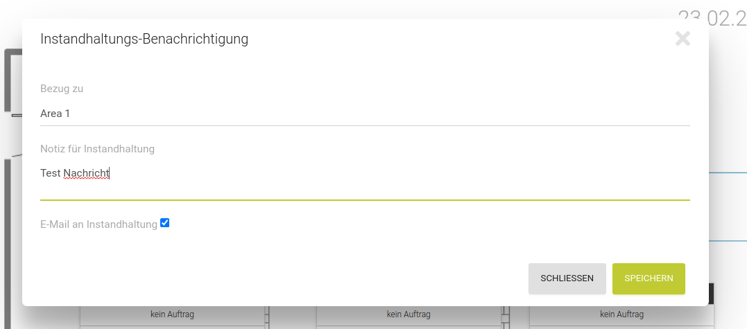 E-Mail-Benachrichtigungen an die Instandhaltung ohne Anlagenbezug sind jetzt möglich.