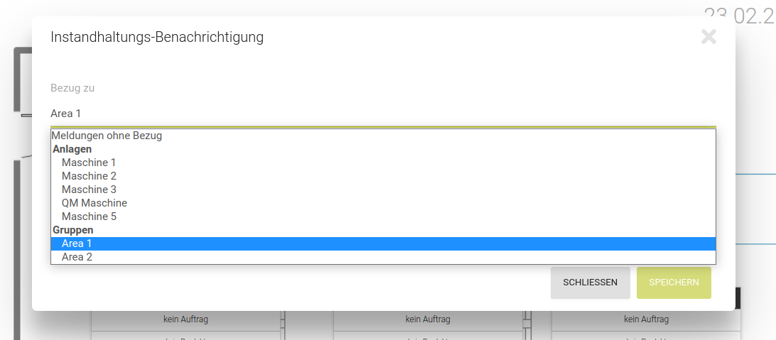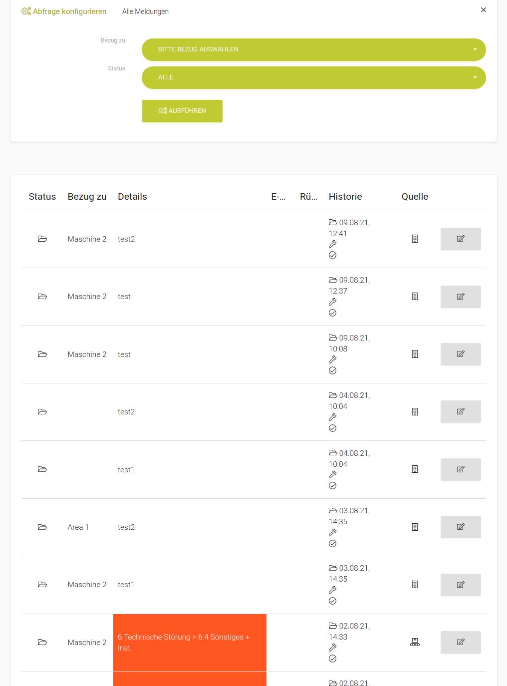 • ohne Bezug (zB allgemeine Meldungen an die Instandhaltung)